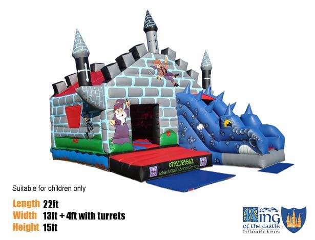 This dragon combination slide and bouncy castle is suitable for children only. With an awesome full design on every wall it’s one of our most popular units for children’s parties in Coventry, Warwickshire, Solihull, Nuneaton & Rugby. We’re proud to have some of the highest quality bouncy castles in the area, while still remaining affordable.